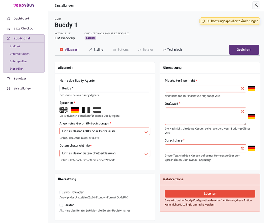 Buddy Chat konfigurieren - Schritt 3: Einstellungen / Allgemein