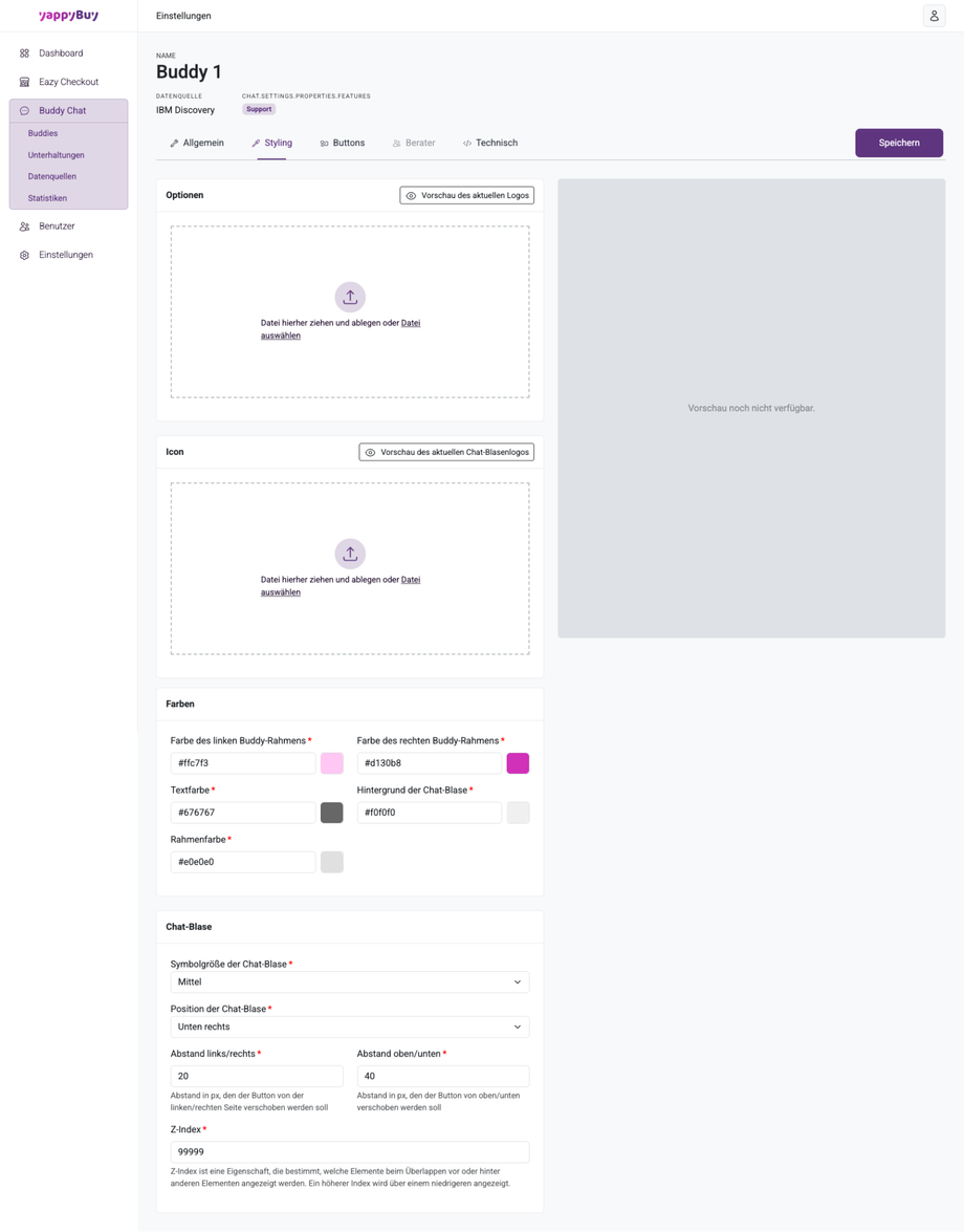 Buddy Chat konfigurieren - Schritt 4: Einstellungen / Styling